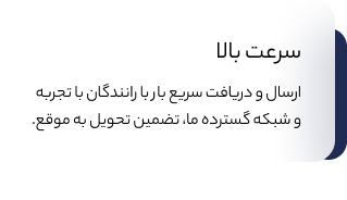 به سرعت بار خود را ثبت کنید وبه شبکه وسیع رانندگان معتبر و متخصص ما دسترسی پیدا کنید تا حمل و نقل شما بدون نگرانی انجام شود.